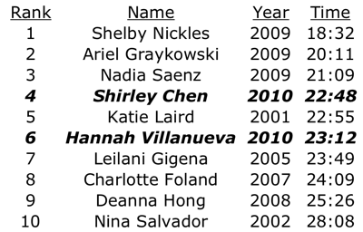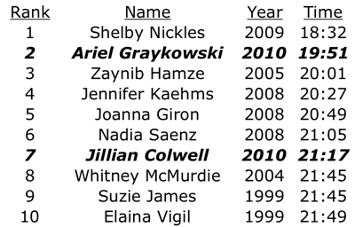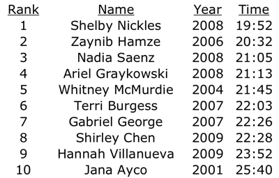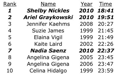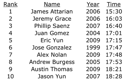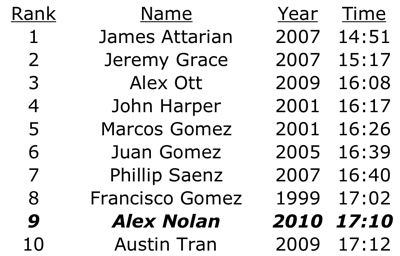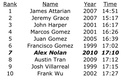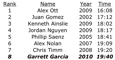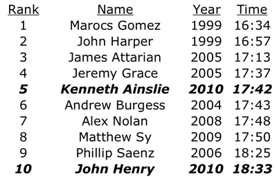 *Please note: All times are since 1999. Please email changes to: coachchriswilliams@yahoo.com*