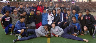 May 12, 2015 - DFAL Frosh Soph Championships - Campolindo High School, Moraga - Sophomore Ariel Katsarelis medaled in 4 events, winning the 100 hurdles in a personal record 18.19, taking 2nd in the 300 hurdles in 53.33, and taking 4th on both the 4x100 and 4x400 relay teams. Classmate Alexander Chung won the boys shot put by nearly 2 feet with a throw of 37’5.5”. He also took 3rd in the discus (100’) and ran a leg on the 2nd place 4x100 team. The Boys 4x400 team of sophomores Caleb Brown (56.6) and Max Ureta (54.7) and freshmen Adrian Schroeder (56.4) and Saahil Shangle (57.2) finished the meet in exciting finishing with each member running their fastest split of the season capped off my a heroic leg from Ureta, making up a sizeable gap and out-leaning Campolindo at the finish line by 0.21 seconds! Results DFAL Frosh Soph Championships